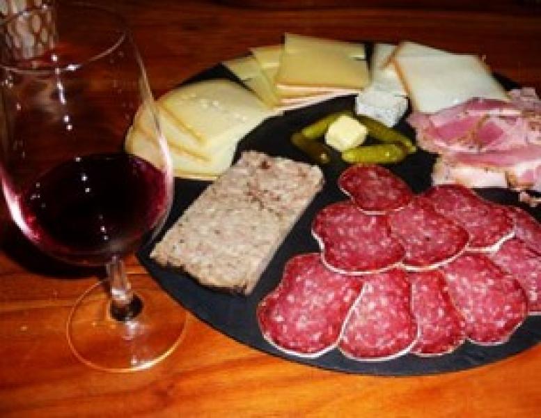 Röstis, fondue, croûtes au fromage, macaronis du chalet, soupe du chalet, fondue charolaise, jambon, meringues, tarte au vin cuit.
